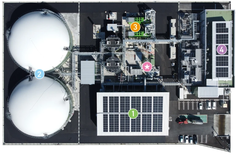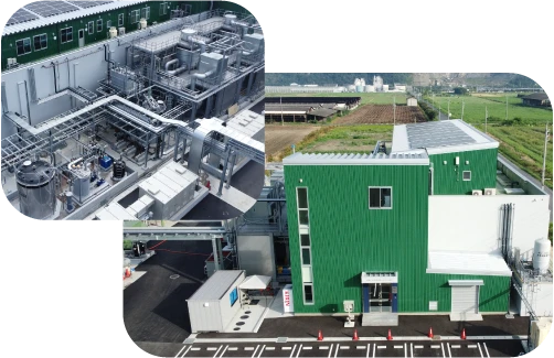 牛ふんの発酵時に生成されるメタンを主成分としたバイオガスを活用し、発電を行います。天然資源をエネルギー源としたカーボンニュートラルな発電方法で、天候や自然環境に左右されにくく、安定した稼働が可能です。