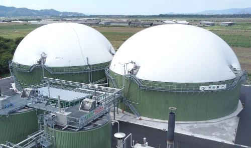 発酵時に生成されたバイオガスは発酵槽の屋根に貯蔵され、ガスエンジン発電機に送られます。