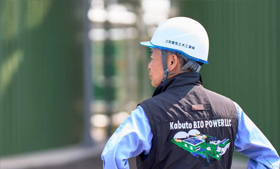 かぶとバイオファーム発電所は牛ふんから創電し、中部電力ネットワークを通じて地域に電力供給を行っています。施設に持ち込まれた牛ふんは発酵槽で燃料となるバイオガスを生成するのと同時に、施設内の脱臭装置により悪臭を大幅に軽減しています。また酪農家にとっては、牛ふんを利用した農業用の堆肥作りの手間を減らせるという効果もあります。