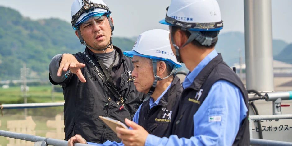 建設に当たってはこの地区は干拓地であったため、地盤改良はしっかりと行い、堅牢なプラントを建設しました。完成後は全国の畜産の盛んな地域から見学もたくさん来ておられます。やはり同じ悩みを持っておられるのは共通かと思いますし、解決する手段となると思いますので、こういった事業が全国のみならず世界中に広がっていくと良いなと思っております。